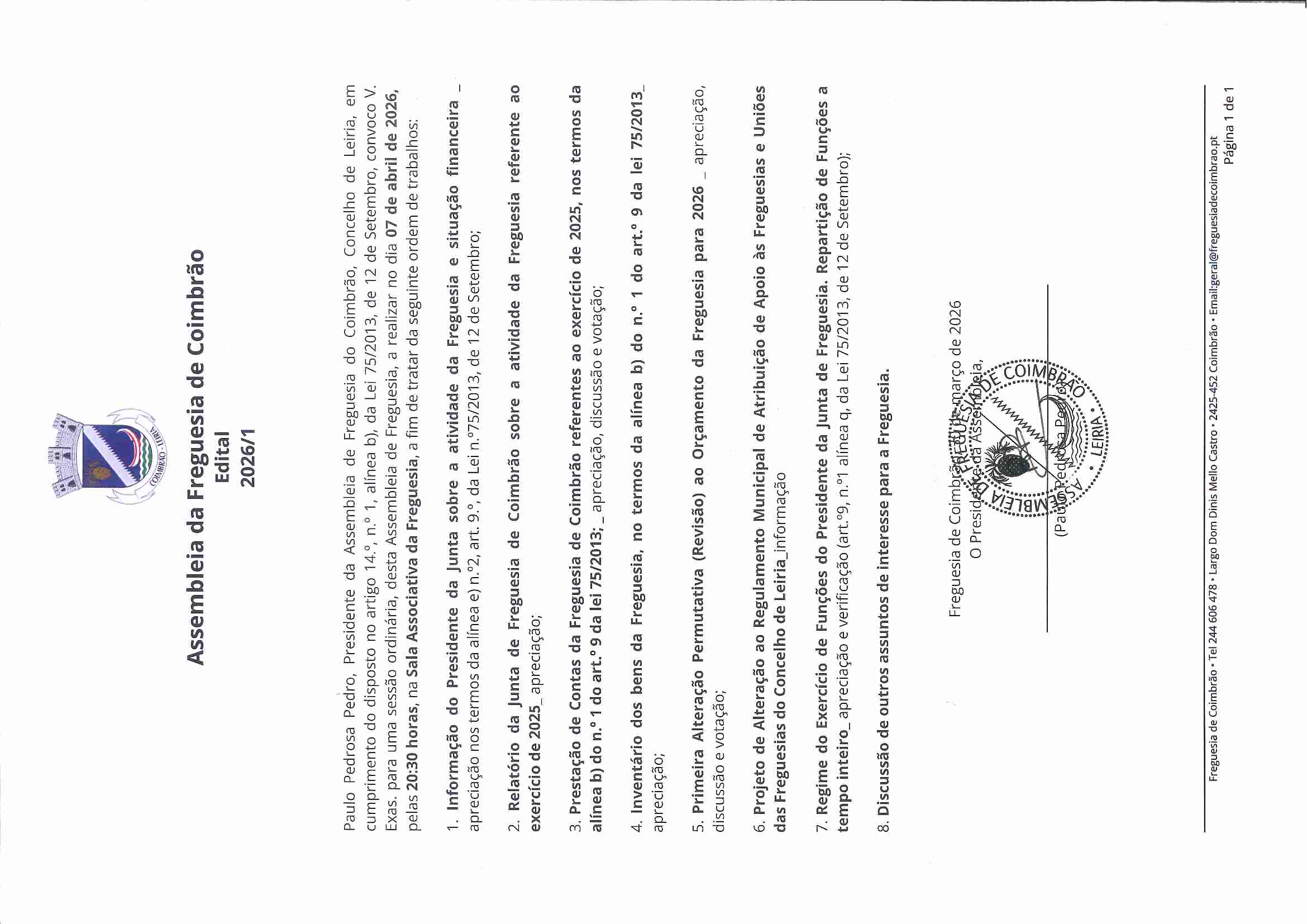 Na qualidade de presidente de junta dou as boas vindas ao novo site da freguesia do Coimbrão.