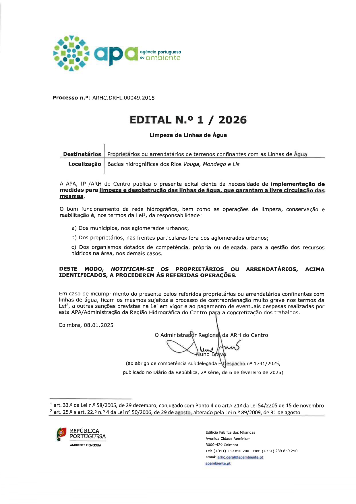 EDITAL 1/2026 - Limpeza de Linhas de Água e Normas de Limpeza